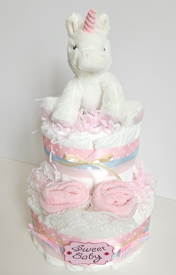 Az új család ezt a Bébi unikornis pelenkatortát, ami egy édes plüss játékot tartalmaz, biztosan nem a fiók mélyére teszik majd.